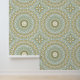 Earthy Mandala in Green, Gold, and Soft Blue Behang