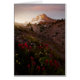 Une étonnante aquarelle numérique image d'un paysage de couchers de soleil enneigé de la vallée de la montagne, y compris des pavots rouges pourpres et des fleurs rose et jaune vif.