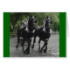 Deux Percherons noirs en marche pendant qu'ils tirent un chariot.