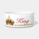 Un bol de chien chic avec une couronne dorée et des rouleaux d'or. Vous pouvez changer le nom sur le bol. J'ai utilisé le lettrage rouge pour faire correspondre le rouge de la couronne. La couronne est remplie de bijoux et de perles et possède une fleur de lis au sommet. Très royal et kayak pour votre animal de compagnie.
