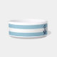 Le design présente une illustration de corde et d'ancrage en bleu marine classique sur un arrière - plan rayé bleu clair et blanc. Personnalisez avec un nom ou un texte de votre choix. Les Ancres peuvent être déplacées selon la longueur du nom de votre chien — il suffit d'utiliser le bouton "Customiser". Articles de coordination, y compris les étiquettes et les lits d'animaux de compagnie, disponibles dans notre boutique!