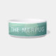 Un cool aquablue aquarelle chien bol de nourriture avec espace pour le nom de votre animal.