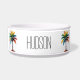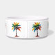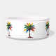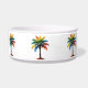 Ce bol à nourriture pour animaux de compagnie personnalisé et amusant présente des palmiers tropicaux dans des tons vifs de rouge, orange, bleu, vert et jaune. Personnalisez avec votre nom au choix.