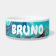 Bleu, turquoise et blanc marbré fluide art personnalisé bol à chien.