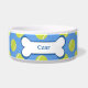 Super mignon bol de nourriture pour chien avec des balles de tennis amusantes et un os de chien avec le nom de votre chien dans l'os.