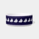 Le bol de chien est affiché en blanc avec une bande d'accent bleu marine avec un joli imprimé de voiliers et d'ancres. Customisez cet objet ou achetez tel quel.