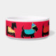 Customisez ce plat de nourriture pour animaux de compagnie pour montrer votre amour des chiens écossais Terrier et personnalisez avec le nom de votre chien au centre sur un arrière - plan rouge. Le design coloré est composé de 6 chiens écossais noirs dans un assortiment coloré de vêtements de chien et sur un arrière - plan rouge. Ces écossais mignonnes et adorables portent des manteaux ou des tee - shirts en chandail de chien colorés et l'un d'eux a un casquette de luge. Les couleurs sont le rouge, la lavande, le violet, le jaune, le bleu turquoise turquoise, le vert citron et l'orange avec empreintes de pattes, étoiles, rayures, chèques et motifs de flocon de neige. Ces chiens fantaisistes et branchés sont l'art original de Phyllis Dobbs et feront fondre le coeur d'un amoureux des chiens. Ces écossais pour animaux domestiques sont à la fois individuellement et sur des blocs colorés avec des bordures pour coordonner les produits. Tous sont entièrement personnalisables pour en faire votre propre !
