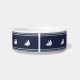 Ce bol bleu nuit a une rangée de voiliers blancs autour du bol.