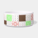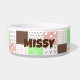 Personnalisé Cute whimsical boho chien bol avec rose, mauve, brun, bordeaux et sauge pois et motif rayures. Des couleurs chaudes et terreuses.