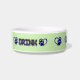 Servez votre animal de compagnie avec style grâce à ce bol à eau en céramique pour animaux. Il présente des cœurs avec empreinte de patte bleue et le mot "Drink" en bleu marine, sur un fond vert sauge. Il est non seulement élégant, mais également sûr pour le micro-ondes et le lave-vaisselle.