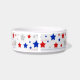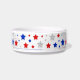 Un bol pour animaux décoratif orné d'étoiles rouges, blanches et bleues.
