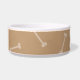 Ce bol en céramique d'aliments pour chiens a une couleur brune d'arrière - plan avec un bon nombre de petits os partout. Au milieu, il y a un grand os blanc avec un nom facilement customisé de votre chienchien.