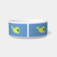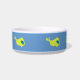 Poisson jaune sur arrière - plan bleu, bol de chat. Ajouter le nom en remplaçant ce texte