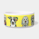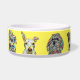 Le bol de chien qui comprend beaucoup de chiens adorables! Bowl a été créé à partir des peintures uniques de Chris Ambrose, de chiens fantasques. La boîte de dialogue peut être CUSTOMISÉE pour modifier la couleur de l'arrière - plan ou ajouter du texte.