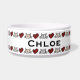 Bol personnalisé d'alimentation d'animal familier d'amour de minou. Le bol encadré de nourriture comportant le tigre mignon a barré des minous et les coeurs conçoivent pour n'importe quel amoureux des chats. Choix de plat moyen ou de grande taille.