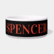 Ce bol pour animaux de style amérindien sud-ouest est parfait pour les chiens de grande taille. Il présente un crâne et des cornes de bœuf au centre et un fond floral réalisé dans des nuances de botanique orange et bleu gris. Tout est fait sur un fond noir et puis vous le personnalisez avec le nom du chien dans une couleur orange coordonnée.