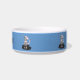Chat marchant sur un arrière - plan bleu, bol de chat. Ajouter le nom en remplaçant ce texte