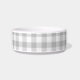 Gris Buffalo Plaid Personnalisé Nom de l'animal sur un petit chat en céramique, un chat d'eau ou un bol de chien avec le nom de votre nouveau chien chiot ou chat kitty dans une police de script de calligraphie à l'intérieur d'un tableau noir faux look étiquette de forme. Le style chic de la ferme, dans des tons neutres, sera parfait dans une cuisine rustique ou moderne.