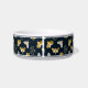 Boho Navy Blue and Gold Moths Boules personnalisées pour animaux de compagnie avec nom Modèle : élégant, tendance et adorable! Nos bols conçus sur mesure sont dotés d'un motif de doodle en bleu marine, jaune, or et blanc, parfait pour les chats et les chiens. Personnalisez avec le nom de votre animal pour une touche unique. Ces bols preppy et élégant ajoutent du charme au repas, célébrant la joie que les animaux apportent. Faites le repas délicieux avec nos bols d'animaux de compagnie personnalisés et élégants.