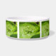 Ce magnifique bol d'animaux de compagnie présente une photo détaillée d'un cricket vert vif, joliment camouflé contre une feuille verte vif. La photographie a été prise en utilisant la macro photographie pour montrer cet insecte fascinant et son environnement dans les moindres détails.