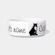 Un chat noir et blanc confiant attend patiemment d'être nourri dans ce design graphique simple avec un modèle facile pour ajouter le nom de votre propre chat.