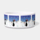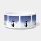 Chat mignon de style de goth dans un casquette de père Noël de Noël de rouge et une babiole de Noël sur l'extrémité de sa queue avec des flocons de neige.