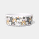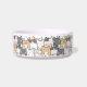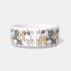 Ce bol à chat charmant présente un design adorable et fantaisiste de divers chats de dessin animé de différentes couleurs et motifs, notamment gris, noir, blanc et orange. Chaque chat a une expression unique, et certains portent même des lunettes, ce qui ajoute à l'esthétique ludique et amusante. Le fond est blanc, ce qui fait ressortir magnifiquement les chats colorés. Il peut être personnalisé avec le nom de votre chat en cliquant sur "Personnaliser ce modèle".