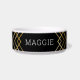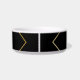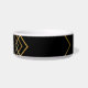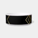 Parties scintillant dorée et bol à chien personnalisé noir avec un design art déco boho mashup avec un motif chevron abstrait moderne et géométrique superposé avec le nom de votre chat ou animal de compagnie imprimé directement sur le bol élégant.