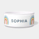 Ce mignon bol à chien comporte une adorable caricature arc-en-ciel, et de l'espace pour ajouter un nom dans la simple typographie. Le design moderne et minimaliste parfait pour tous les amoureux de l'arc-en-ciel, une excellente façon d'accueillir un nouvel animal de compagnie!
