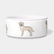Illustration originale de Destei d'un chien de race Labrador Retriever de couleur crème anglaise. Le dessin de chien est placé plusieurs fois sur ce bol, ce qui fait que les illustrations de chien tournent autour du produit. Ce design est idéal pour tout propriétaire de chien de laboratoire qui recherche un bol de chien amusant et charmant pour le dîner ou l'eau de son chien.