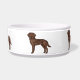 Illustration originale de Destei d'un chien de race Labrador Retriever de couleur chocolat. Le dessin de chien est placé plusieurs fois sur ce bol, ce qui fait que les illustrations de chien tournent autour du produit. Ce design est idéal pour tout propriétaire de chien de chocolat Lab qui recherche un bol de chien amusant et charmant pour le dîner ou l'eau de son chien.
