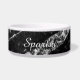 Clin brillant argent noir chic abstrait Nom de l'animal Bowl. Customisez le faux cadeau pétillant avec votre nom d'animal (chat, chien...). Composition numérique d'une photo d'étincelles noires et blanches et d'une belle pierre noire. *photo de scintilles, pas de parties scintillant réelle !