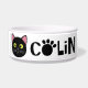 Quirky Colin Cat Bowl avec la lettre O comme un empreinte de patte et tête de chat noir. Les couleurs peuvent être changées. Vous pouvez supprimer le texte et ajouter le vôtre.
