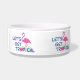 Ce bol pour chien avec un graphique amusant et mignon de « Allons-y tropical avec des flamants roses » est parfait pour votre animal de compagnie. Conception d'Inge Lewis. Cadeaux formidables pour votre famille, vos amis ou vos invités. Trouvez plus d'objets assortis dans la boutique ingeinc.com.