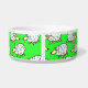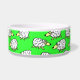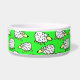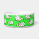 Boule de nourriture pour chien mouton. Amusants troupeaux de dessins animés de moutons sur ce bol alimentaire pour animaux de compagnie. Idéal pour les chiens, surtout les chiens de berger. Arrière - plan vert.