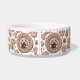 Ce charmant bol de Noël à thème pour chien présente des illustrations de biscuits en pain d'épices dessinées à la main. La pièce maîtresse de cette conception est un grand biscuit rond en pain d'épices qui sert de cadre à la photo de votre chien, entouré de biscuits d'os de chien mignons, de biscuits empreintes de pattes, de biscuits de roue à pinces, et plus encore.