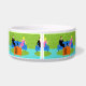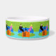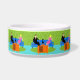 Ce Couple Rétro avec Cat Ceramic Pet Bowl présente un couple de dessins animés essayant de devenir confortable en regardant la télévision sur un canapé bleu moderne du milieu du siècle. Le chat, cependant, a d'autres idées. D'un côté du canapé, un beau homme en costume noir avec cravate rouge. De l'autre côté du canapé design, il y a une belle femme blonde en forme de robe rose chaude. Les choses se passeraient bien si ce n'était le chat noir élégant, qui a revendiqué le coussin du canapé central. Ce design minimaliste de style années 60 est installé dans un élégant salon. La toile de fond du canapé est un mur vert en pierre. Au niveau de l'aqua se trouve un tapis rond et vert en forme de marais qui s'accorde avec le mur en pierre. A l'avant-garde du design, on voit l'arrière d'une télévision orange avec des oreilles de lapin, qui semble jouer le programme TV préféré du chat.