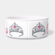 Le bol pour chien présente une illustration originale au marqueur d'un joli diadème de princesse avec des strass et des bijoux roses. Personnalisé pour tout chien ou chat nommé PRINCESSE.