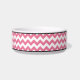 Cuvette en céramique élégante de chat conçue avec un motif de zigzag rose et blanc de chevron et personnalisée avec votre nom d'animal familier.