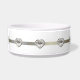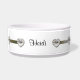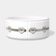 Plat élégant d'aliments pour chiens, avec de jolis graphiques d'un ruban argenté de ton, avec des fausses pierres en forme de coeur de diamant, autour du plat. Le texte fait sur commande noir vous permet de customiser avec votre nom d'animal familier, parce que une cuvette personnalisée votre chien peut être fière de. Fait une grande idée de cadeau.