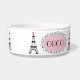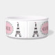 Cuvette noire rose chic d'animal familier de chien de nom de Tour Eiffel
