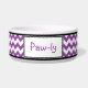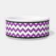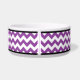 Cuvette en céramique élégante de chien conçue avec un motif de zigzag pourpre et blanc de chevron et personnalisée avec votre nom d'animal familier.