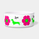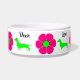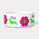 Un si mignon plat de chien, des fleurs rétro roses et vertes chaudes et des dachshunds vert citron ornent ce bol. Donnez à votre bébé de fourrure Doxie Love!