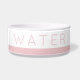 Moderne et simple imprimé sur mesure Pink Stripe Ceramic Bowl avec "eau" écrit à l'extérieur dans une bordure minimaliste d'une bande au fond dans une jolie et féminine couleur rose muet tendance. La fine police sans-serif s'adapte à n'importe quel type de décor depuis des années.