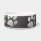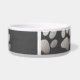 Empreinte de patte de compagnie pailletée argent sur fond gris sur bol.