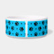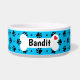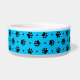 Empreintes de pattes de chiens noirs et motifs de coeur avec une couleur arrière - plan bleue vive personnalisée sur la nourriture pour chien et les bols d'eau. Ce motif peut être facilement agrandi ou réduit à votre préférence et choisir votre couleur arrière - plan préférée. Personnalisez ce plat avec le nom de votre chien imprimé sur l'os de chien blanc accentué d'un coeur rouge. Idée cadeau mignonne pour n'importe quel chien parent!