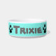 Cette cuvette personnalisée d'animal familier de turquoise a une conception adorable avec quatre empreintes de pattes autour de elle. Cette cuvette a le nom d'animal familier sur l'avant dans de grandes lettres pour son nom. Modèle facile disponible pour suivre simplement l'invite pour écrire votre nom d'animal familier.