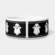 Les illustrations de Destei de personnages fantômes mignons avec différents types d'expression faciale. La couleur de l'arrière - plan est noire et il y a une zone de texte personnalisable pour un nom ou un autre texte personnalisé. Le haut et le bas ont une fine bordure blanche. Cette conception est idéale pour l'heure d'Halloween, par exemple.