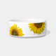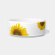 Boule d'animal floral personnalisé, avec un tournesol jaune sur un arrière - plan blanc. Avec le lettrage noir, vous pouvez personnaliser avec votre propre texte. Idéal pour ajouter une touche champêtre à vos accessoires spéciaux pour chien ou chat.