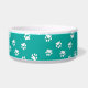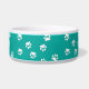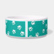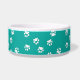 Cette grande cuvette de chien a un arrière - plan de turquoise avec les empreintes de pattes blancs là-dessus. Grande taille pour de plus grandes variétés de chien. Il tient 40 onces de nourriture et est le matériel en céramique blanc. Il est sûr pour la micro-onde et le lave-vaisselle aussi bien.